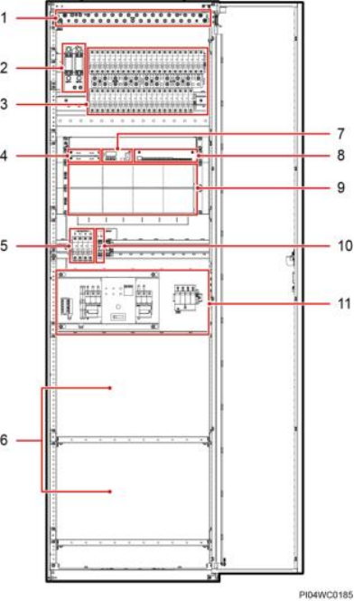 (4)通信扩展模块安装空间 (5)交流输出空开 (6)电池安装空间