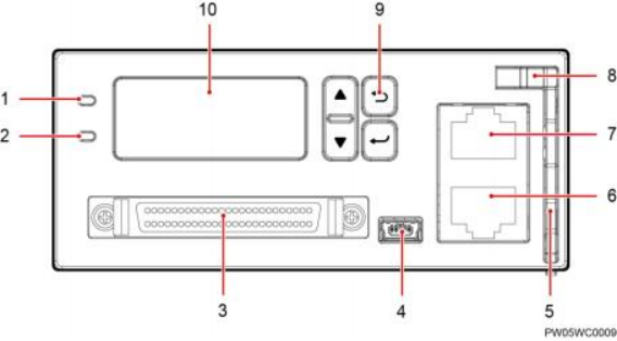 (1)运行指示灯 (2)告警指示灯 (3)通信接口 DB50