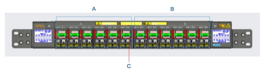 A. 直流配电盒A部分 B. 直流配电盒B部分 C.电源开关